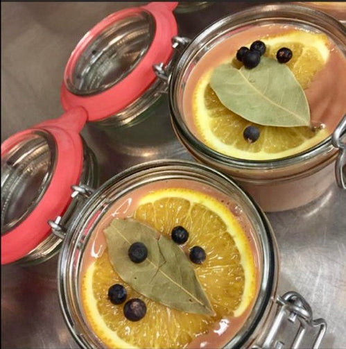 Zutaten: Entenleber, Butter, Eier, Cognac, Madeira, Portwein, Pastetensalzmischung, Nitritpökelsalz, Zucker, Orange, Grand Marnier